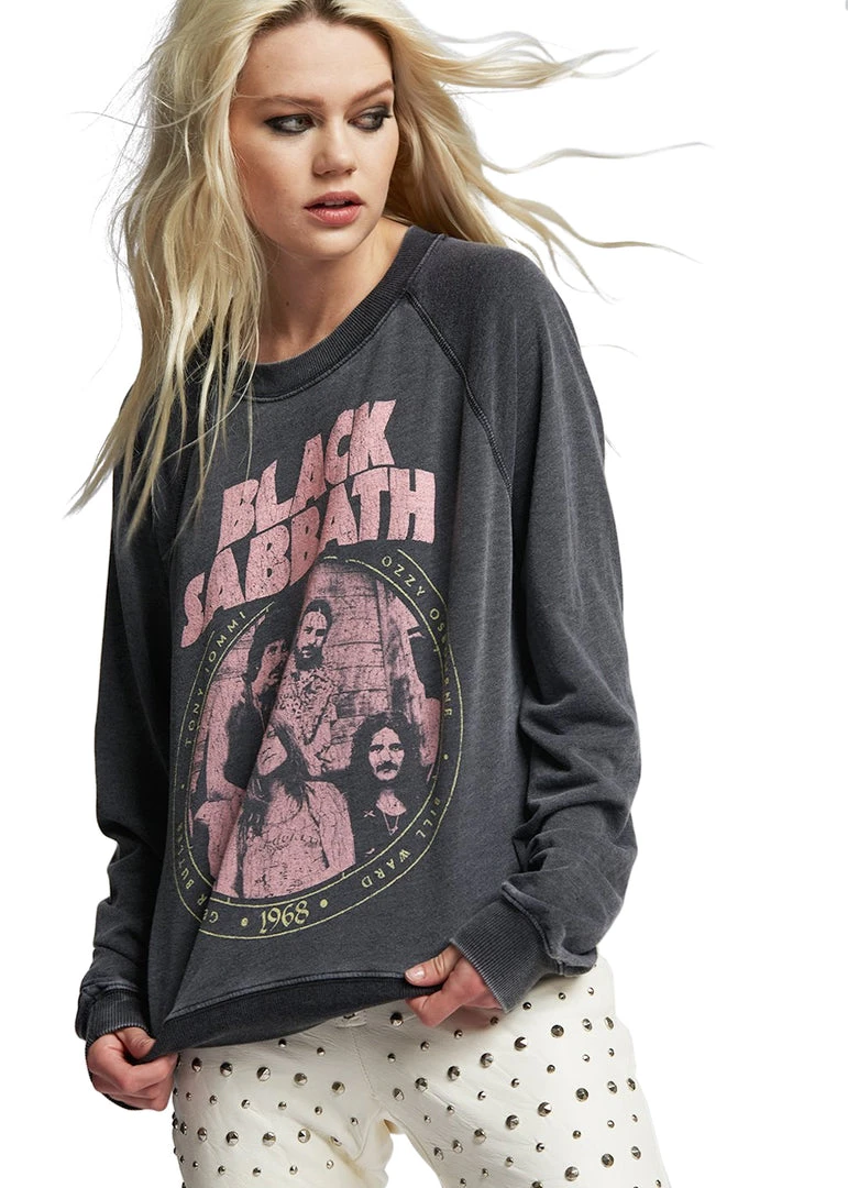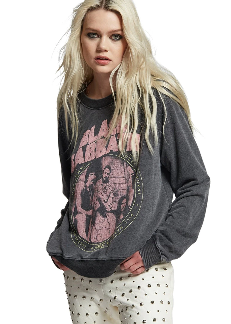 Throw it back in this rad Black Sabbath band members sweatshirt by Recycled Karma.