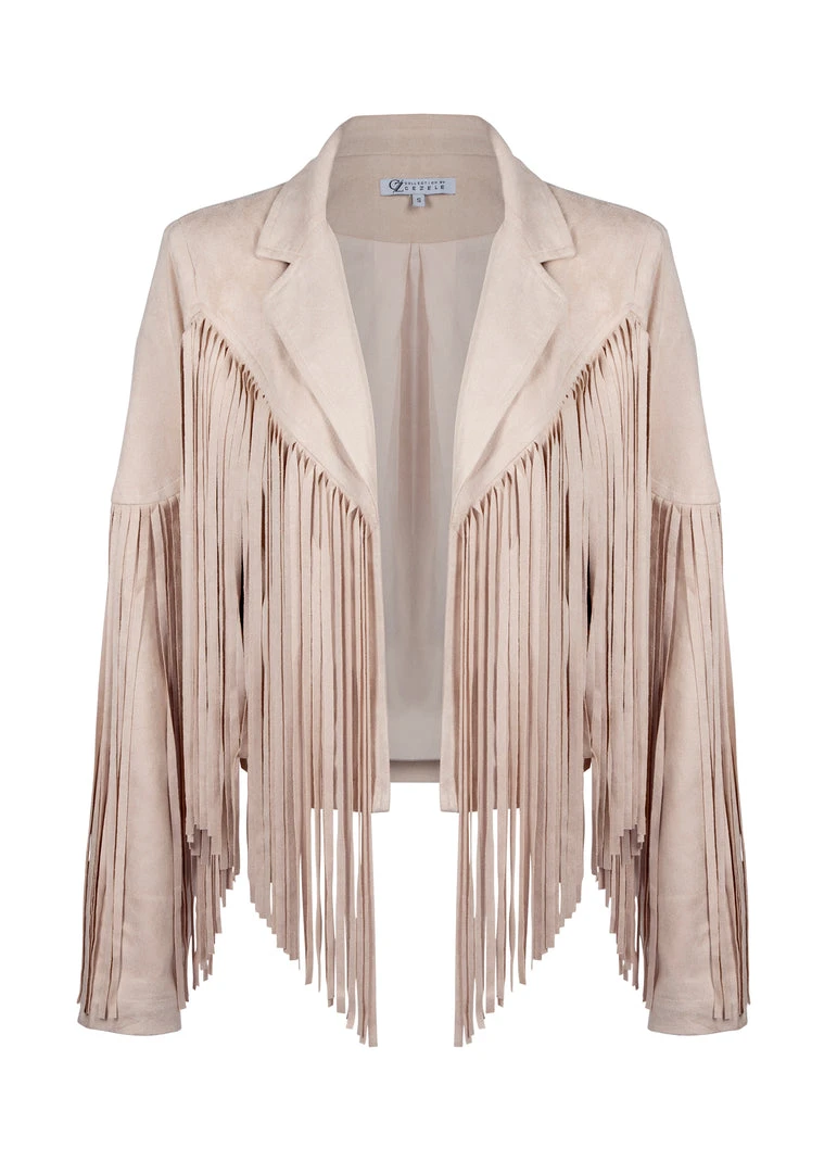 Give your ensemble an edgy chic update with this fringe jacket! Great for layering with high waisted denim shorts, band tees or crop tops and platform ankle boots.