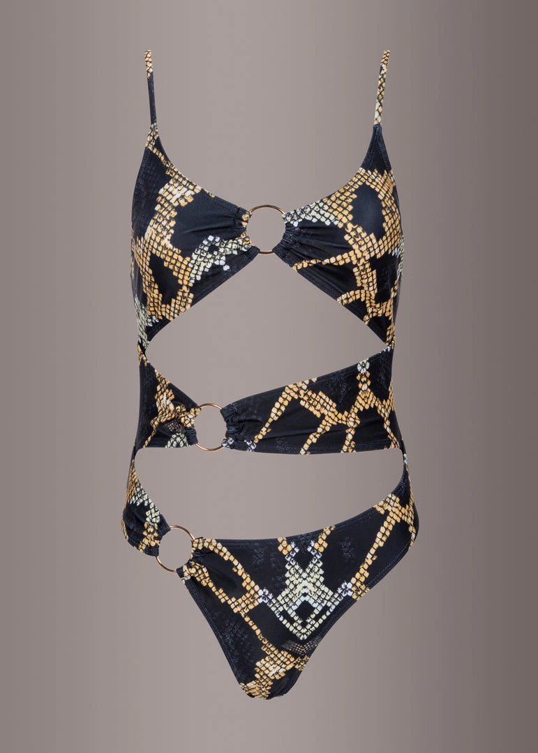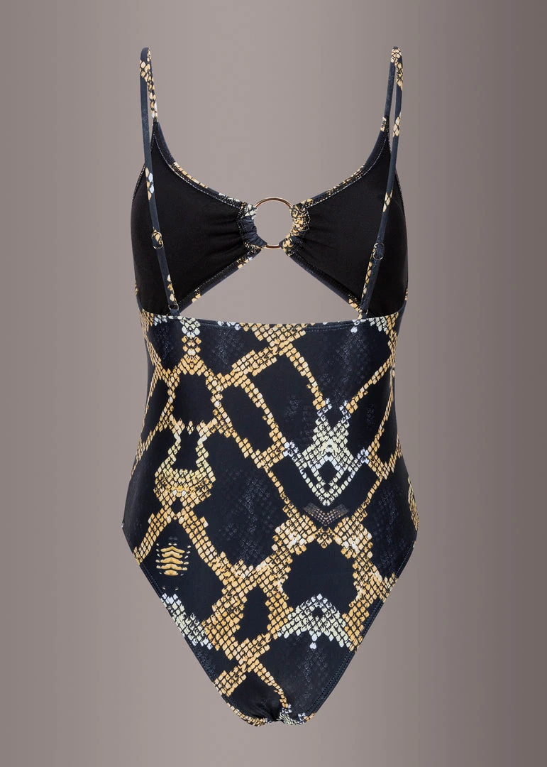 A fierce snakeskin inspired animal print makes sure all attention is on you with this stunning monokini!