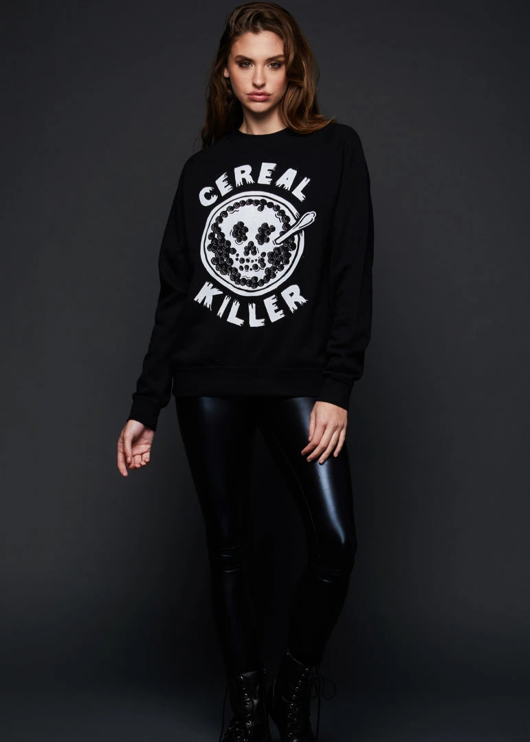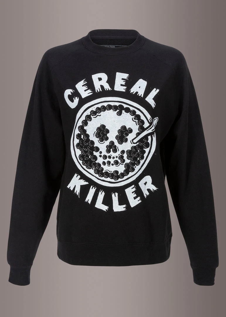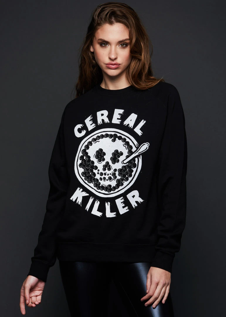 The Cereal Killer skull unisex adult raglan crewneck sweatshirt by Pyknic is made of high quality and comfy, vintage-inspired tri-blend fabric. The graphic features a milk skull in a bowl of cereal. Each sweatshirt is proudly screen printed by hand using an environmentally friendly process and soft, eco-friendly inks in the USA.