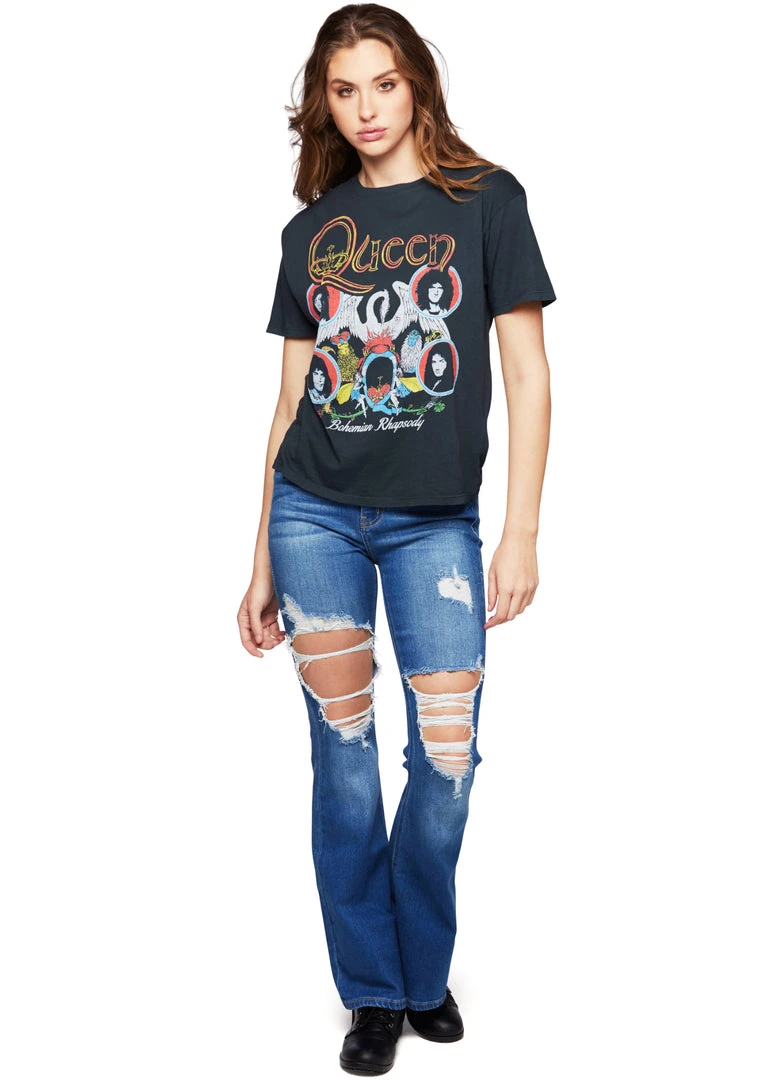 This Queen band shirt by Daydreamer LA is an updated version of a classic fan favorite. With the same vintage look and feel you love, updates include more pops of color, all legendary band members’ faces, and a romantic script that calls out Bohemian Rhapsody – the six minute hit that changed the face of music.